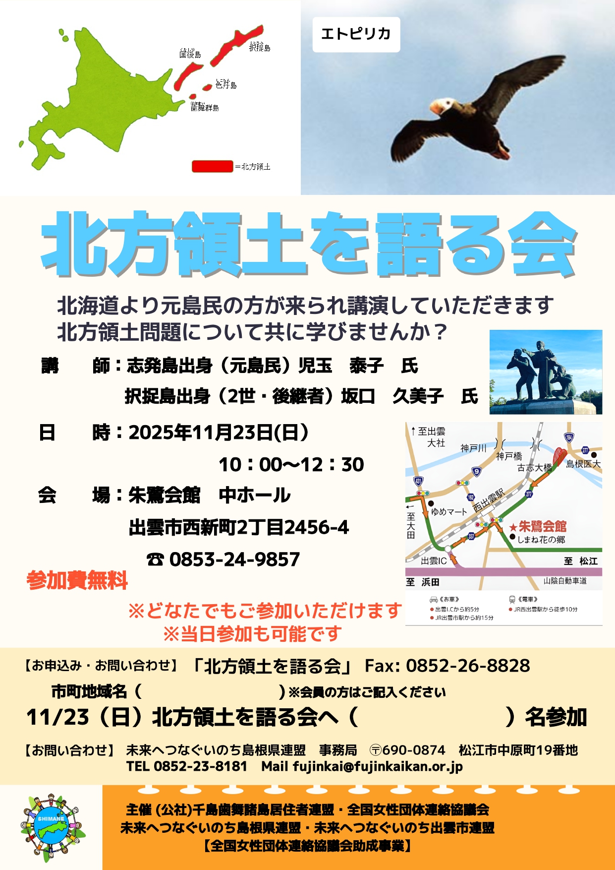 11月23日(日) 北方領土を語る会 開催のお知らせ